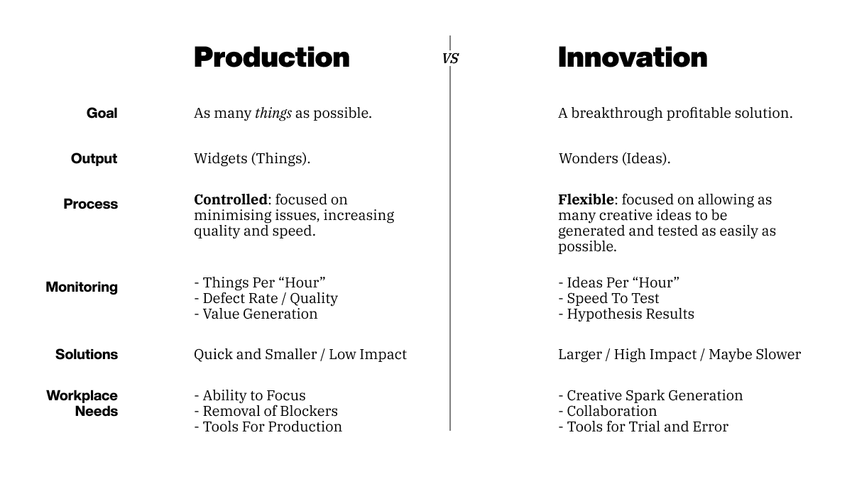 Production is the creation of widgets, and innovation is the generation of wonders.